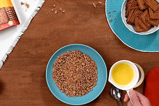 Pronti, partenza, via! Sbriciola finemente tutti i biscotti in una ciotola
