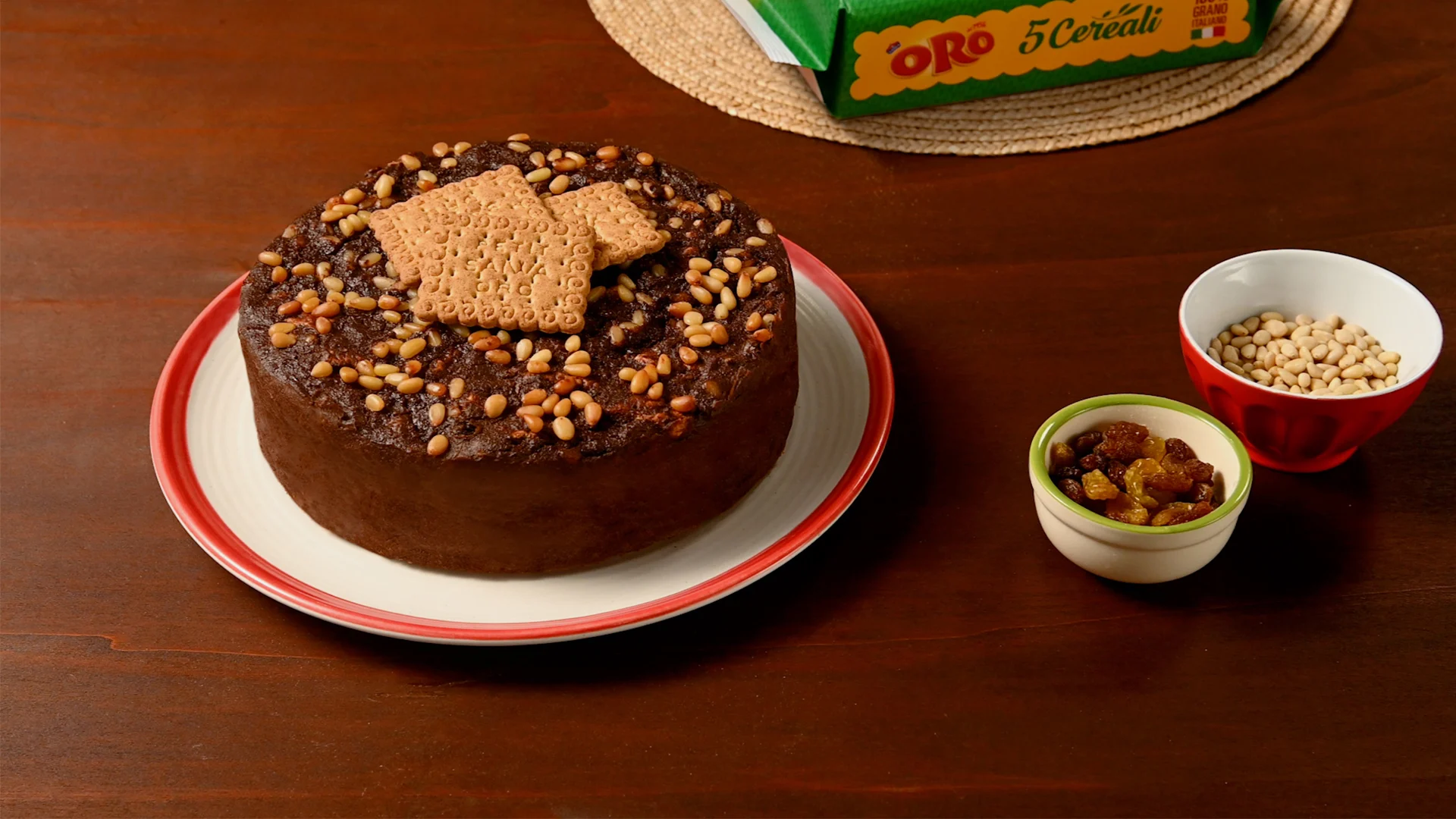 Dopo aver aggiunto nella ciotola dell’impasto l’uvetta e la metà dei pinoli mescolando ogni volta, aggiungi Oro 5 Cereali spezzettandoli. Mescola con un cucchiaio.